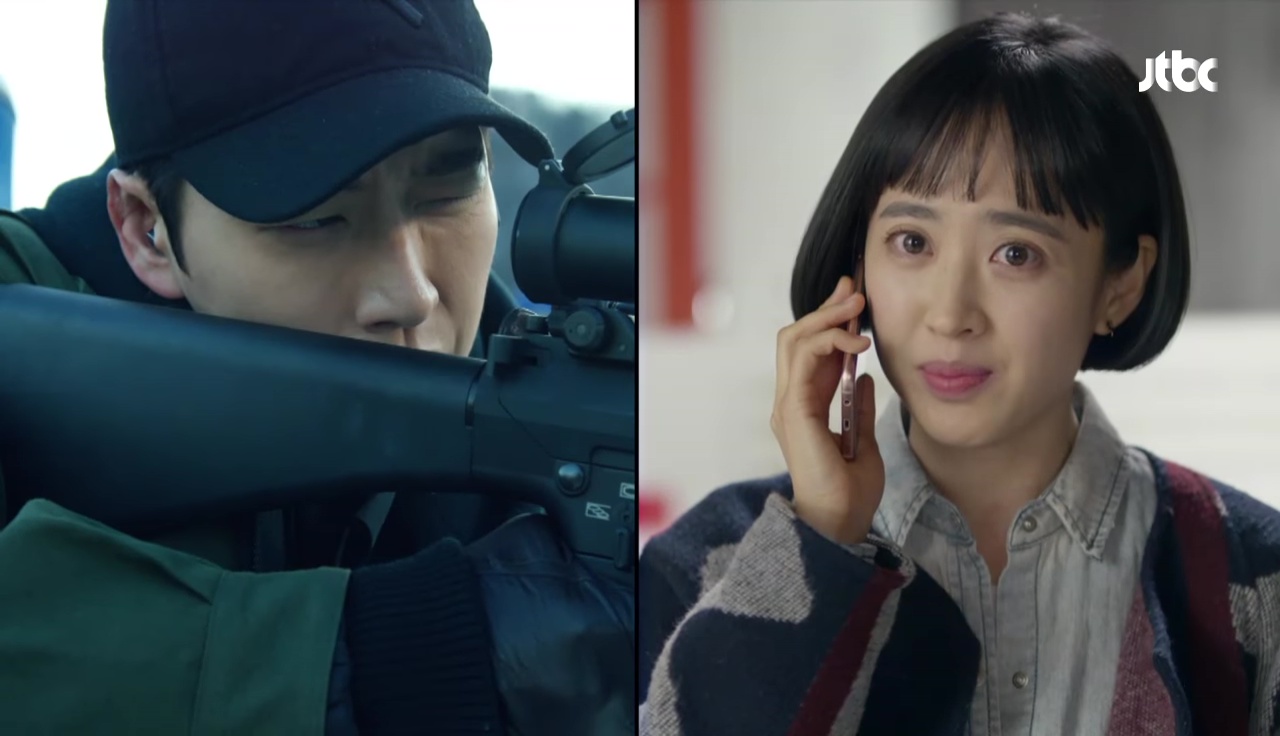 Kim Seol Woo vừa bắn súng vừa nghe điện thoại của Cha Do Ha