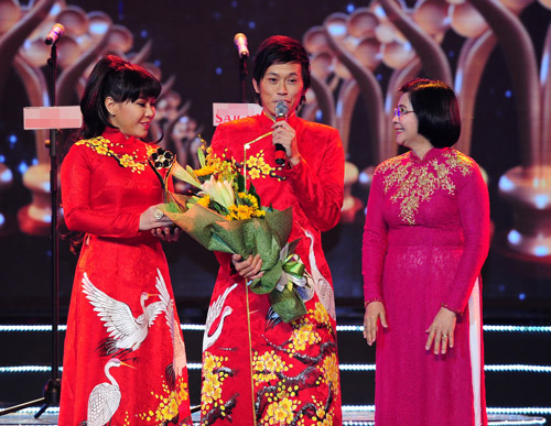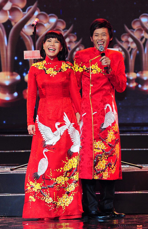 Hoài Linh phát biểu: "Trước khi đến với chương trình này, tôi và "vợ" Việt Hương đã quyết định mặc áo dài cặp để xuất hiện cùng nhau. Bộ áo dài của tôi và cô ấy được làm từ một khúc vải nên lúc nào hai đứa cũng phải đứng cạnh nhau thì người ta mới nhìn thấy được trọn vẹn các họa tiết trên tà áo. Do đó, khi được xướng tại giải thưởng Mai Vàng tối nay, tôi cũng muốn chia sẻ niềm vui này với "bà vợ" của mình và cùng Việt Hương đi có đôi có cặp lên bục nhận giải".