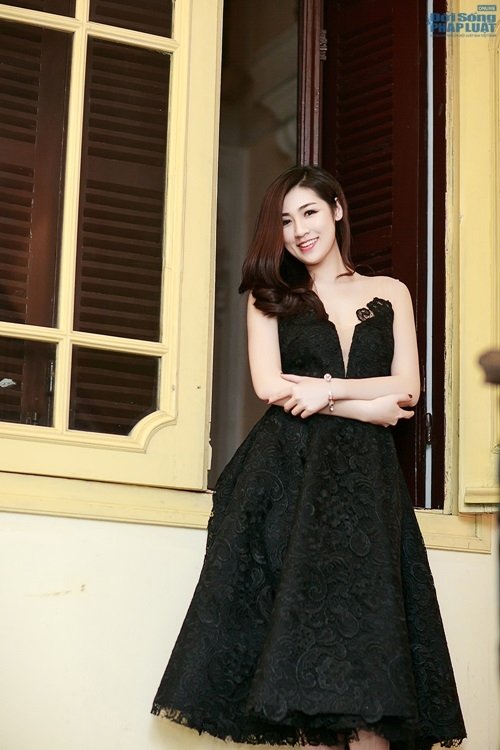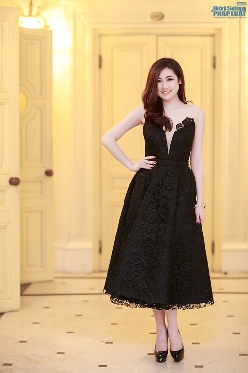 Tú Anh xinh tươi trong chiếc đầm đắp ren đen sang trọng.