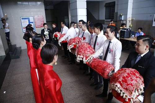 Những cô gái trong đội ngũ bê tráp của nhà gái chủ yếu là bạn bè thân thiết với Trà My như Diệp Lâm Anh, Lều Phương Anh, Uyên Linh...