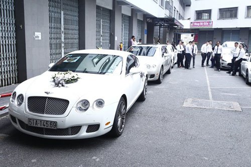 Sau khi làm thủ tục xin dâu, Trà My được chú rể tháp tùng trên chiếc Bentley trị giá 11 tỷ để về nhà trai. Đây là phương tiện đi lại thường ngày của chú rể Tô Văn Đức.