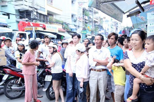 Rất nhiều người đi đường nán lại trước cửa nhà chú rể để xem hôn lễ.