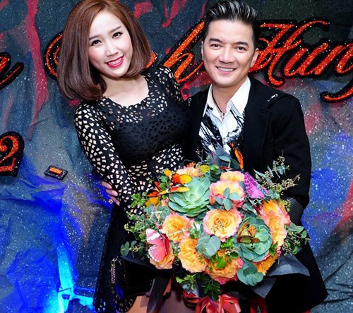 Để đáp ứng ước nguyện nhỏ bé của nam ca sĩ, bà bầu Minh Hà cũng tức tốc đặt một chiếc váy bầu có màu cam. Trong khi đó, Lý Hải lại lịch lãm trong bộ vest màu đen. Hai vợ chồng cặp đôi nổi tiếng tay trong tay đến mừng sinh nhật Mr.Đàm.