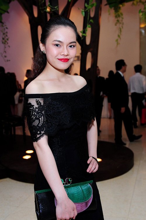 Nữ diễn viên Hiền Mai điệu đà với chiếc đầm lệch vai. Tuy nhiên, người đẹp khá vụng về khi đi tất đen với dép sandal. Cô được nam ca sĩ đón tiếp từ ngoài sảnh.