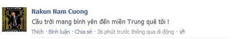 Là một người con của miền Trung, sau khi nghe tin về cơn bão Hải Yến đang đổ bộ vào dải đất miền Trung Nam Cường đã chia sẻ trên trang cá nhân với mong muốn người dân miền Trung sớm "tai qua nạn khỏi" và bình yên: "Cầu trời mang bình yên đến miền Trung quê tôi".