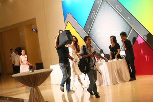 Khi phát hiện có người chụp ảnh, một người đại diện của chương trình mà cô tham gia đã dùng chiếc túi to để che mặt cho Hồ Ngọc Hà. Nữ ca sĩ rảo bước nhanh vào sân khấu để chuẩn bị cho màn trình diễn.