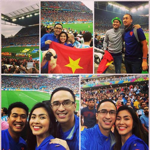 Trước đó, dù bận rộn với công việc kinh doanh nhà hàng nhưng vợ chồng Tăng Thanh Hà đã sắp xếp để bay sang Brazil để tận mắt chứng kiến ngày hội bóng đá lớn nhất hành tinh từ vòng bán kết. Cặp trai tài gái sắc sẽ ở lại đây thêm vài ngày tới để xem trận chung kết giữa Agentina và cỗ xe tăng Đức.