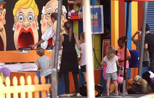 Cô bé Zahara (áo cam) sau đó cũng tới vui chơi cùng hai em. Maddox, Pax Thiên và Shiloh đã không đi chơi cùng mẹ. Một tuần trước, cả nhà đã có chuyến dã ngoại dài ngày vui vẻ bên nhau tại Queensland, Australia nhân dịp Giáng sinh và năm mới.