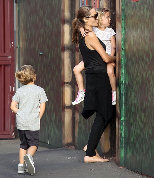 Jolie đang bận làm đạo diễn phim "Unbroken" nhưng mỗi tuần cô đều dành ra 1-2 ngày đưa các con đi chơi.
