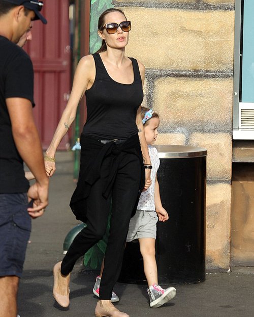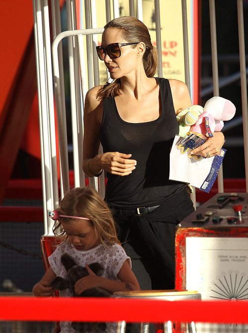 Jolie mặc áo ba lỗ năng động khi đi chơi với con.
