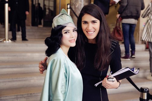 Lý Nhã Kỳ chụp hình cùng bà Desiree Sadek, tổng biên tập tạp chí Elle Ả rập và Phương Đông.