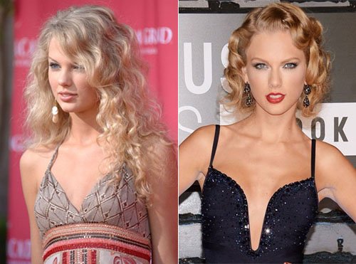 Cũng nâng ngực giống như Miranda nhưng vòng 1 mới của Taylor Swift vẫn bị coi là nhỏ bé so với chiều cao 1m8 của cô. Trong nhiều lần xuất hiện, Taylor còn bị coi quá gầy gò, lộ xương ngực.