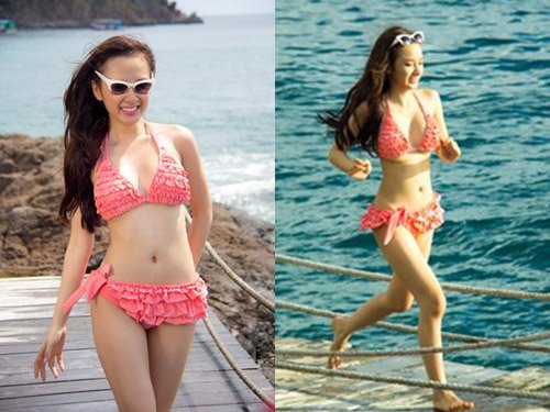 Thúy Diễm trông rất dễ thương khi khoe dáng với bikini xanh và tóc xõa tự nhiên.
