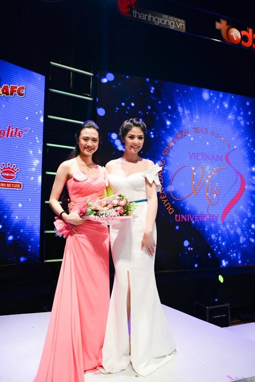 Ngọc Hân khoe sắc cùng một thí sinh tham gia cuộc thi.