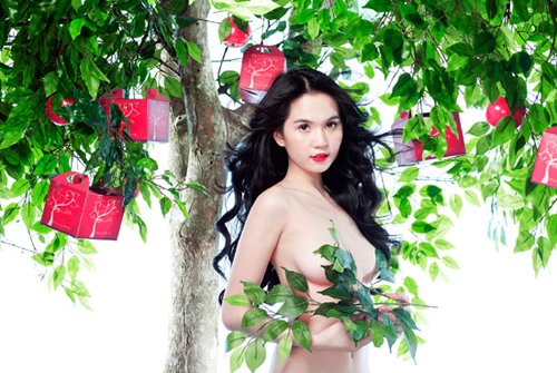 Mấy ngày vừa qua, dư luận lại “dậy sóng” vì bộ ảnh "Cám dỗ" của Ngọc Trinh. Trong bộ ảnh này, Ngọc Trinh ngồi lên quả táo, trên tay cầm chiếc hộp nhỏ màu đỏ. "Nữ hoàng nội y" gần như khỏa thân hoàn toàn, chỉ khéo che đậy những phần nhạy cảm nhất trên cơ thể bằng miếng vải trắng mỏng tang, hoặc lá cây giả...