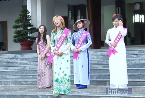 Nhóm f(x) diện áo dài khi ghi hình ở Dinh Độc Lập.