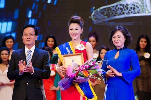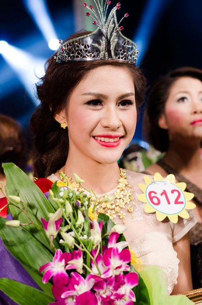 Lô Thị Hương Trâm - người đẹp giành vương miện trong đêm chung kết cuộc thi nhan sắc tối 18/9 ở Hà Nội - vô tình lộ một phần ngực khi di chuyển trên sân khấu.
