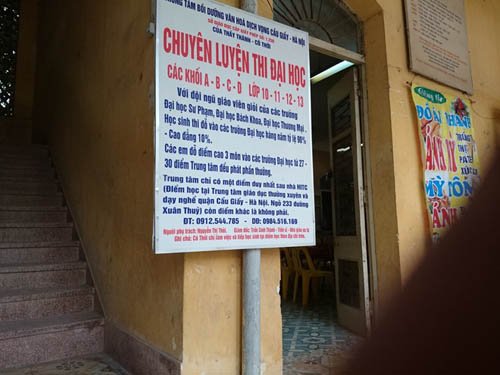 Áp phích quảng cáo của một trung tâm luyện thi (quận Cầu Giấy, HN) không có học sinh đến học. Ảnh: D.H
