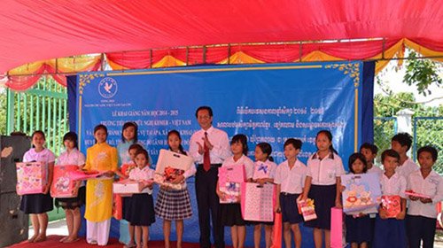 Trường Tiểu học Hữu nghị Khmer – Việt Nam tại tỉnh Prey Veng được khánh thành năm 2012, trên diện tích đất gần 4.000m2, kinh phí xâ