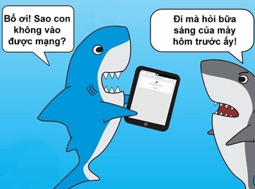 Vào lúc 8h04 phút ngày hôm qua (5/1), tuyến cáp quang biển AAG lại một lần nữa bị đứt. Một trong những nguyên nhân dẫn đến sự cố này được cho là do cá mập cắn. Trên các trang mạng đã xuất hiện một loạt hình ảnh chế hài hước về sự kiện đứt cáp quang với những ngôn từ hài hước, dí dỏm. Dưới đây là một số ảnh chế của cư dân mạng:
