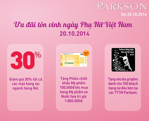 ƯU ĐÃI ĐẶC BIỆT TÔN VINH NGÀY PHỤ NỮ VIỆT NAM TẠI PARKSON TRONG 2 NGÀY 19 VÀ 20/10/2014