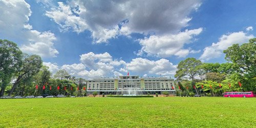 Dinh Thống Nhất đầy màu sắc trong một ngày nắng đẹp.