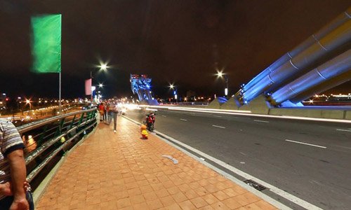 Một góc nhìn về Sài Gòn từ quận 2. Ở bức ảnh này, do sử dụng các phần ghép, nên bức hình vẫn chưa nối với nhau hoàn thiện.
