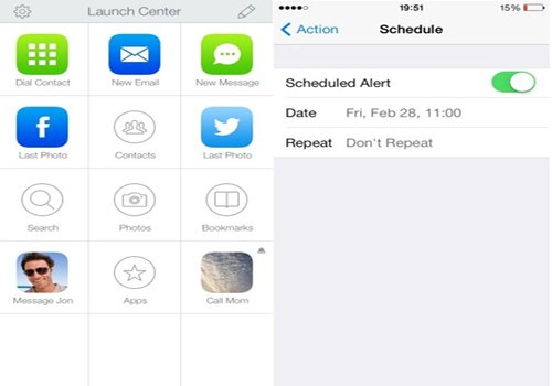 Launch Center Pro cho phép thiết lập các nút cho các nhiệm vụ yêu thích chẳng hạn như gọi điện thoại, nhắn tin hoặc gửi email đến một địa chỉ liên lạc nhất định hay thực hiện nhiệm vụ phức tạp hơn như tải các bức ảnh gần đây nhất lên Dropboxvà sao chép URL để chia sẻ.