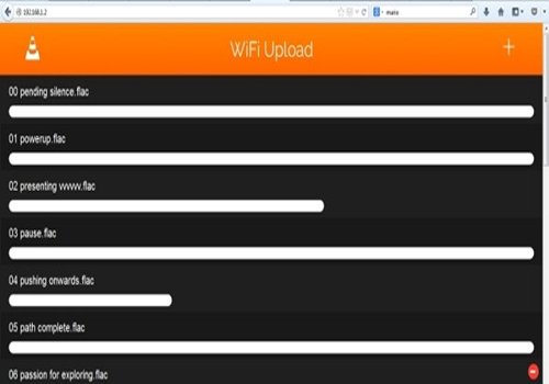 Người sử dụng thậm chí không cần phải kết nối thiết bị iOS vào máy tính để chuyển các tập tin vì VLC for iOS còn làm được nhiều hơn. Tính năng WiFi upload tích hợp có thể kéo thả các tập tin qua mạng không dây. Bạn cần phải kiểm tra địa chỉ trong ứng dụng VLC for iOS (như trong hình dưới đây là http://192.168.1.2) rồi nhập vào trong trình duyệt web trên máy tính để truy cập.