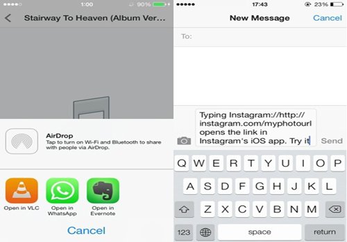 Người dùng muốn gửi các liên kết đến từ Instagram thông qua iMessage hay WhatsApp? Lựa chọn duy nhất là sao chép URL hình ảnh và dán vào cửa sổ chat. Vấn đề là khi người nhận nhấp chuột vào liên kết này, nó sẽ mở ra trong trình duyệt Safari. Dưới đây là cách để có thể mở các liên kết trong các ứng dụng tương ứng. Đơn giản, bạn cần thêm từ khóa appname :/ / trước URL. Ví dụ, để mở một trang trong Instagram, bạn gửi liên kết như: instagram :/ / http://instagram.com/xyzabc. Tinh chỉnh này hoạt động tốt với một số ứng dụng, nhưng không phải với tất cả mọi ứng dụng đều có thể sử dụng cách này.
