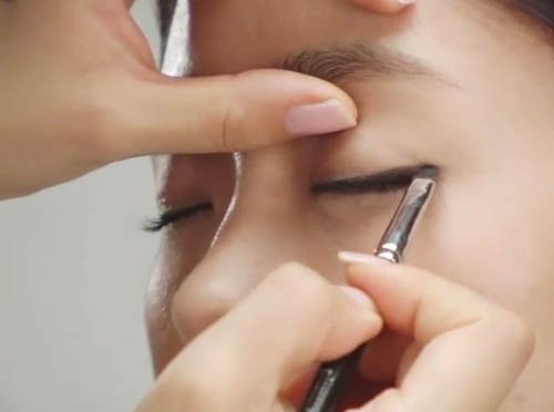 Khi kẻ viền mắt (eyeliner), bạn hãy kéo dài đường viền mắt ra quá khỏi đuôi mắt ngoài một chút với một nét bút vẽ chếch lên. Nếu bạn có mí mờ hoặc một mí, cách tốt nhất nên vẽ viền mắt to hơn một chút, còn với người mí rõ, nên vẽ đường viền nhỏ.