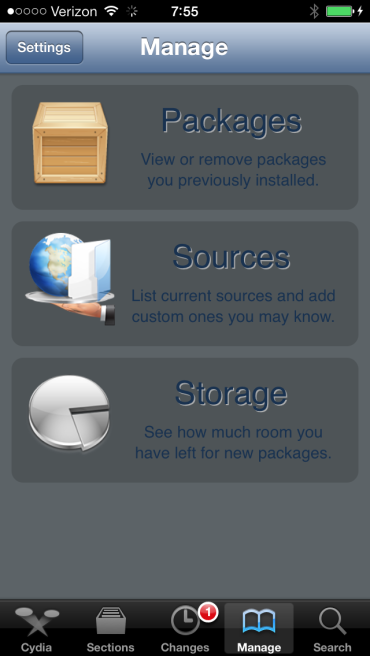 Biểu tượng Cydia trong menu giao diện IOS 7