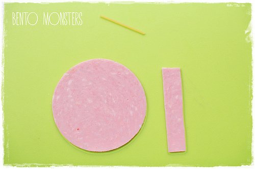 Bước 5: Dùng thịt xông khói để làm mũi, miệng và hai cái gạc.