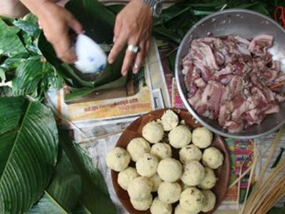 Ngày tết nhiều người tự gói bánh chưng, món ăn truyền thống không thể thiếu -Ảnh: T.G.T.