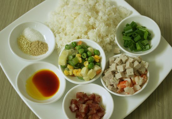 Sự pha trộn giữa nhiều thành phần đem lại cho bạn món cơm chiên vàng ươm, đẹp mắt, không hề có cảm giác ngấy.