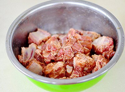 Đầu tiên, bạn rửa sạch sườn rồi ướp với muối, tiêu và xì dầu trong khoảng 15-20'.