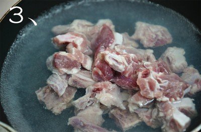 Rửa sạch sườn, chuẩn bị một nồi nước nóng cho sườn vào đến khi sườn chuyển màu thì vớt ra, để ráo nước.