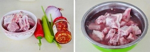 Chuẩn bị đầy đủ nguyên liệu. Cho sườn vào bát lớn, thêm nước vào và rửa sạch.