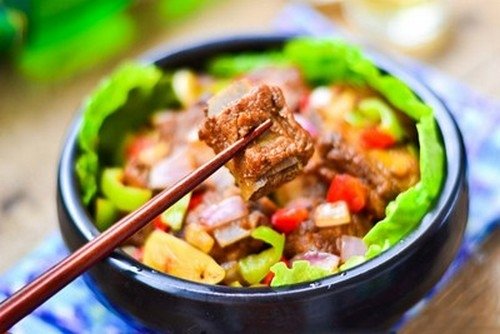 Khi thấy dậy mùi thì bạn cho sườn vào ngược trở lại chảo, nêm nếm với ít muối, nước tương, tiêu xay, nước dùng gà cho vừa ăn, đun một lúc rồi tắt bếp.