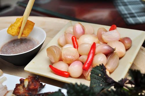 Ngoài dưa chuột còn có hành muối giải ngấy.