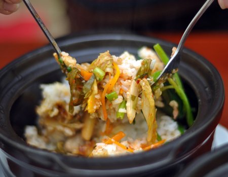 Nguyên liệu bánh cũng không đơn điệu với bắp cải và khoai mỡ như thông thường. Dù không tinh mồm, bạn vẫn dễ dàng phát hiện ra nó có thêm một loại rau củ gì đó rất thơm, mang hương vị đặc trưng riêng. Nhưng nếu tò mò hỏi thì bạn cũng sẽ chẳng được giải đáp đâu, bởi chủ quán cho biết đó là bí quyết "tuyệt mật" của cửa hàng. Thêm một ưu điểm nữa, có lẽ do cửa hàng mới mở, còn đang trong giai đoạn "chiêu khách" nên với mức giá 45.000 đồng mà nhân bánh khá đầy đặn, nhiều tôm, mực.