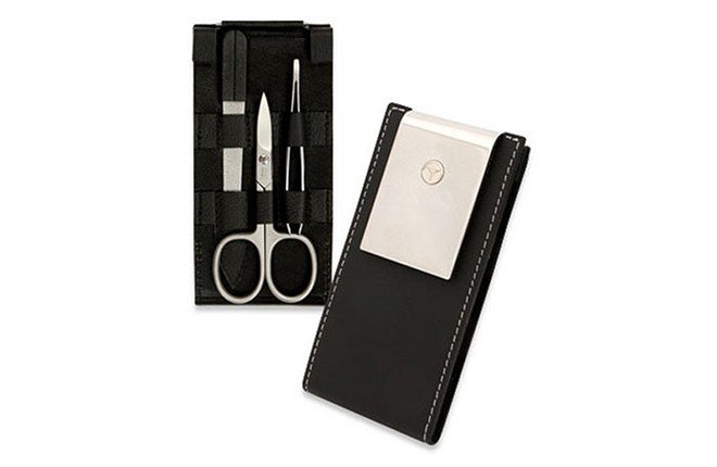 Bộ cắt tỉa móng tay của Mercedes-Benz có lẽ là một trong phụ kiện theo xe không quá đắt và vẫn có tác dụng dù không rẻ. Thứ phụ kiện này có vỏ bằng da và bấm móng tay, kéo, dùa móng tay bằng thép và được bán với giá 117 USD.