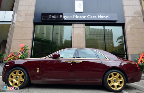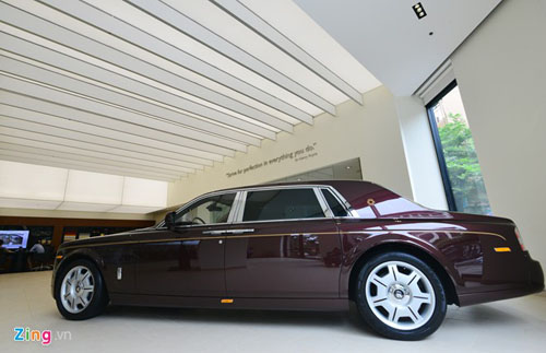 Bên trong showroom đang trưng bày mẫu xe siêu sang Rolls-Royce Phantom Oriental Sun - Mặt trời phương Đông. Chiếc xe được một nữ doanh nhân đặt hàng theo chương trình bespoke của Rolls-Royce, với các chi tiết mang đậm bản sắc Việt.
