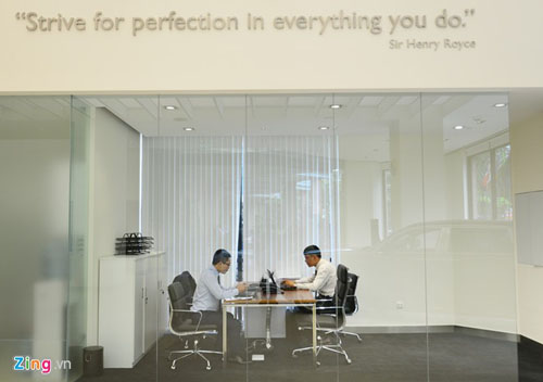 Ngoài không gian trưng bày xe, nơi đây cũng được bố trí các phòng làm việc nhỏ cho đội ngũ nhân viên kinh doanh được đào tạo bài bản từ Rolls-Royce.