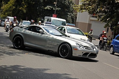 Được mệnh danh là mũi tên bạc, mẫu coupe Mercedes-Benz SLR McLaren có duy nhất một chiếc ở Việt Nam. Siêu xe đeo biển Sài Gòn nhưng một số lần được bắt gặp trên đường phố Hà Nội. Model này về nước hồi năm 2008, được trang bị động cơ V8, dung tích 5,4 lít, hộp số tự động 5 cấp, cho khả năng tăng tốc 0-100 km/h trong 3,4 giây, tốc độ tối đa đạt 320 km/h.