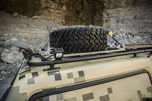Ở bên ngoài, Nissan Project Titan sở hữu thiết kế thô ráp và hầm hố. Có thể thấy rõ điều đó qua cản va trước, tời kéo và vỏ bọc rằn-ri họa tiết kỹ thuật số. Ngoài ra, Nissan Project Titan có một không hai còn được trang bị đèn phụ dạng LED, bộ la-zăng Fuel Revolver D525 với đường kính 18 inch và lốp Nitto Trail Grappher M/T 35 inch.