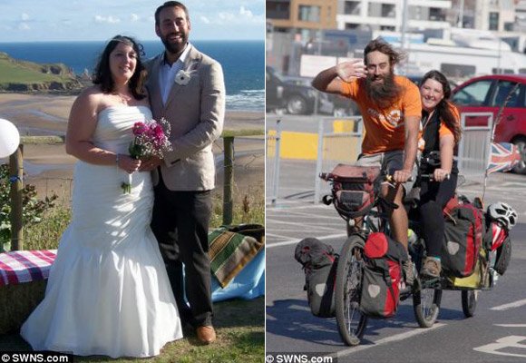 Cặp đôi người London này đã bay đến Vịnh Bigbury, ở New Zealand vào tháng 8/2011 để tổ chức tiệc cưới. Sau đó, họ đã bắt đầu 674 ngày đạp xe đạp đôi đi đến nhiều miền đất khác nhau.