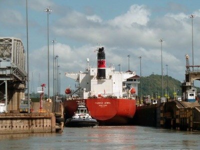 Tàu chở hàng đi qua Kênh đào Panama.