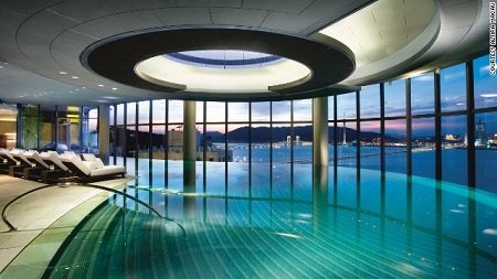 Bể bơi trong nhà tưởng như vô tận tại Altira Macau khi mà tại đây ta có thể ngắm trọn khung cảnh của bán đảo Iberia.
