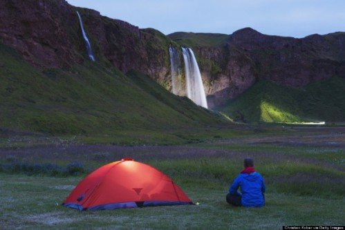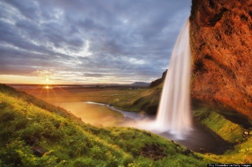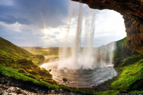 Điểm đặc biệt của thác nước Seljalandsfoss đó là bạn có thể trèo vào bên trong của thác và ngắm cánh đồng xanh biếc bên ngoài qua làn nước trong vắt.